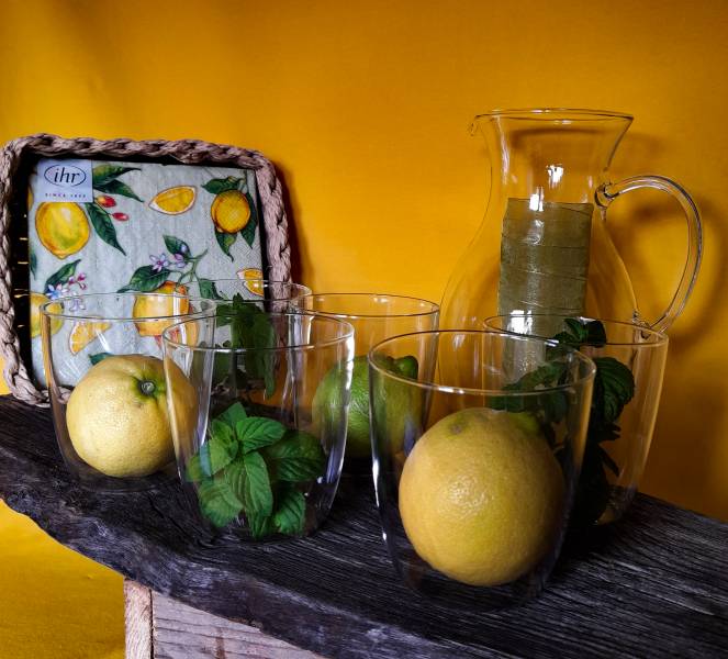 Introduciamo alcune serie di bicchieri in confezioni da 6 per tipo, proponendo quelli in borosilicato svasati, per acqua, vino e bibita, cosicchè la vostra credenza e la vostra tavola quotidiana appaiono ordinate e omogenee nelle forme, gradevoli alla vista.