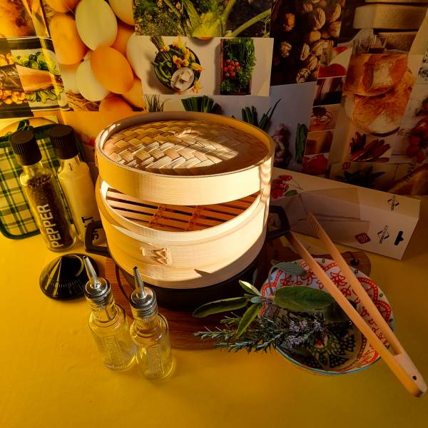 Cucinare a vapore piatti di pesce, carne, verdure e pasta, con il cestello bambù, un materiale dalle proprietà antibatteriche, che conferisce al cibo tutti gli aromi sprigionati dal vapore, come vuole la cucina asiatica. E per non macchiare il cestello, (dato che si deve evitare di lavarlo col detersivo) consigliamo l'uso del canovaccio in cotone naturale e riutilizzabile, sicuramente più ecologico rispetto alla carta da forno.