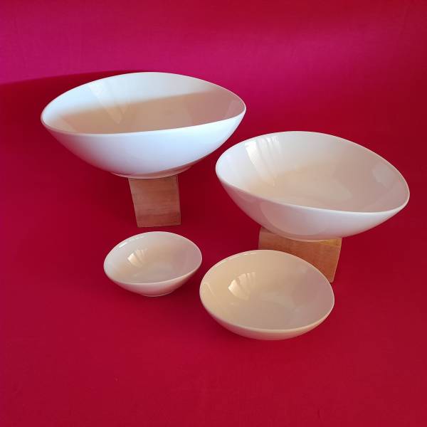 Spesso, in un tavolo imbandito, occorrono dei recipienti dai quali ogni commensale possa servirsi i cibi che più gradisce, con questa serie di ciotole, dal bianco brillante, risalta il protagonista principale di una tavola ordinata ed essenziale: il cibo.