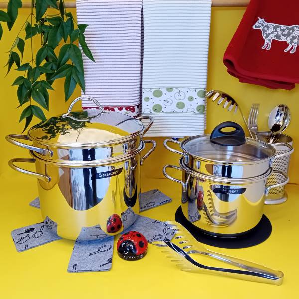 Per cucinare ogni tipo di pasta vi presentiamo le pentole pastamania e cuoci e vedi, dotate entrambe di comodo scolapasta, entrambe utilizzabili su tutti i fornelli.