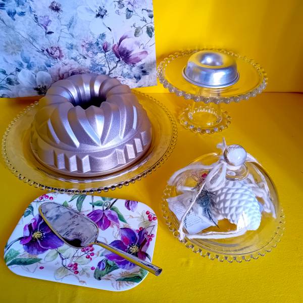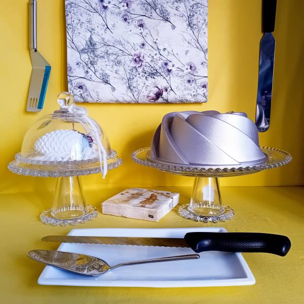 DATA: 26/04/2025 Alzatine e campane per dolci Proponiamo un nuovo modello di alzata e campana in vetro, per portare in tavola dolci. Naturalmente affiancati a pale e coltelli utili al taglio e distribuzione delle fette di dolce.