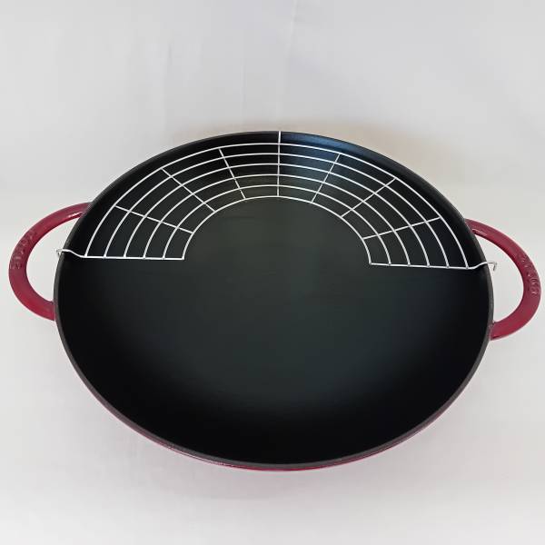 Volete ottenere una buona frittura? Con il wok Staub in ghisa smaltata, 2 manici, potete averla. Infatti, la nota forma svasata, permette di utilizzare poco olio e quindi avere un cibo leggero. Poi con la ghisa smaltata, la cottura è più omogenea. In oltre, la comoda griglia di cui è completo, permette di sgocciolare il cibo e mantenerlo caldo.